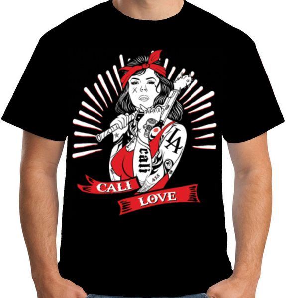 Velocitee Mens T Shirt Cali Love Gangster Girl Gangsta Tattoo Hip Hop Summer The New Fashion For Short Sleeve Awesome T Shirt Designs Tea Shirts From